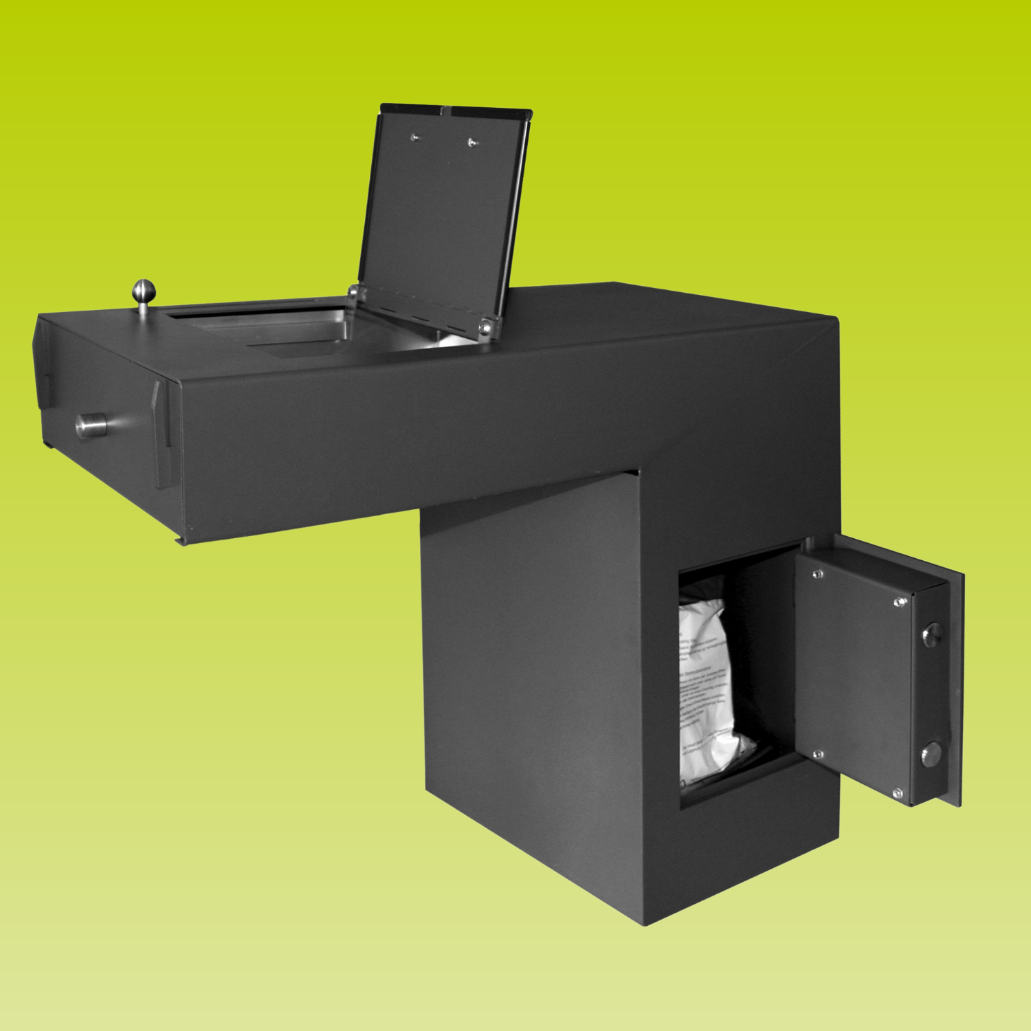 Dies ist die 4. Generation des Filialtresors. Ihr Wechselgeld ist sicher. Ihre Tageseinnahmen sind vor Dritten geschützt. Dank zusätzlicher Technologie behalten Sie jeder Zeit die volle Kontrolle über Ihre Einnahmen.
